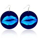 Blue Lips Painted Wooden Earrings Blue Lips Painted Wooden Earrings